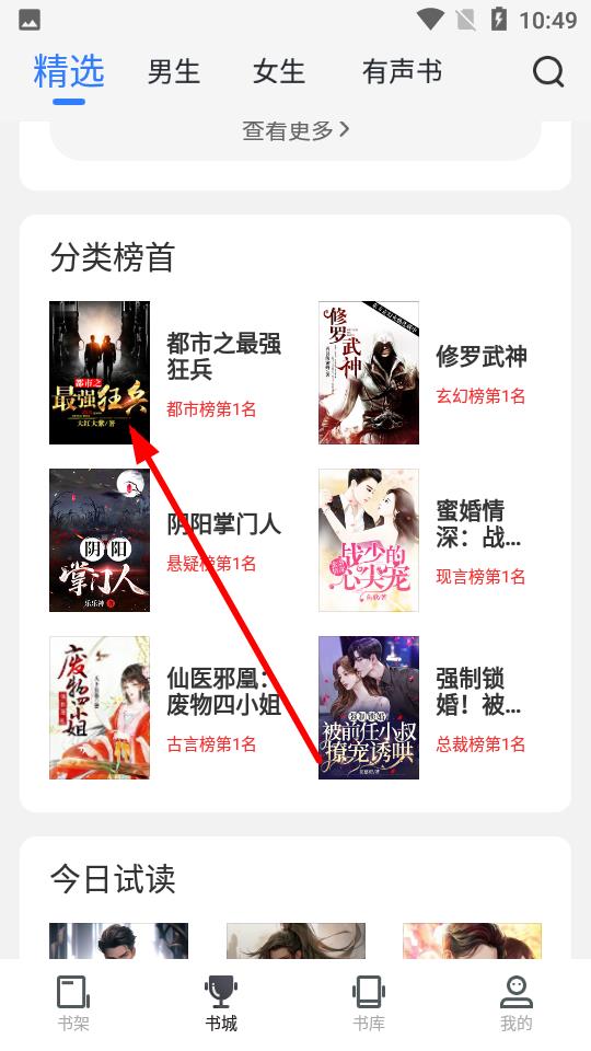 1、打开免费追书APP,在书城页面挑选想听的小说,比如都市之最强狂兵。