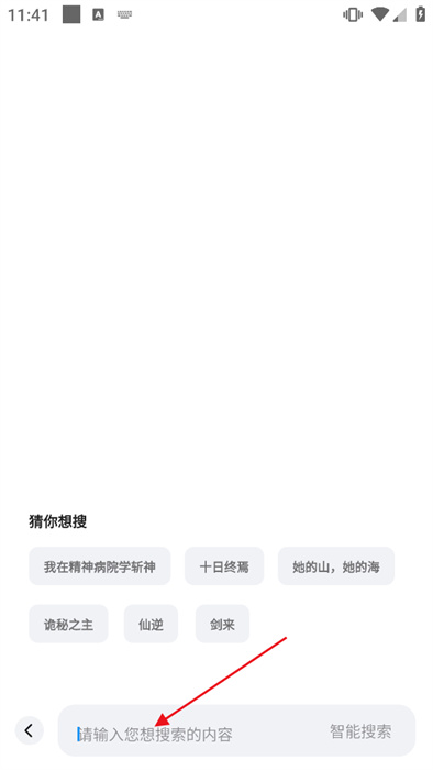 1、将已经下载完成的软件打开并进入首页,点击首页中间的搜索框会跳转页面;