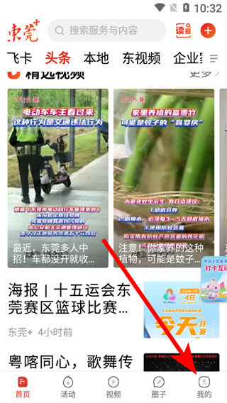 1、在东莞新闻app首页,点击右下角我的选项,进入个人中心界面。
