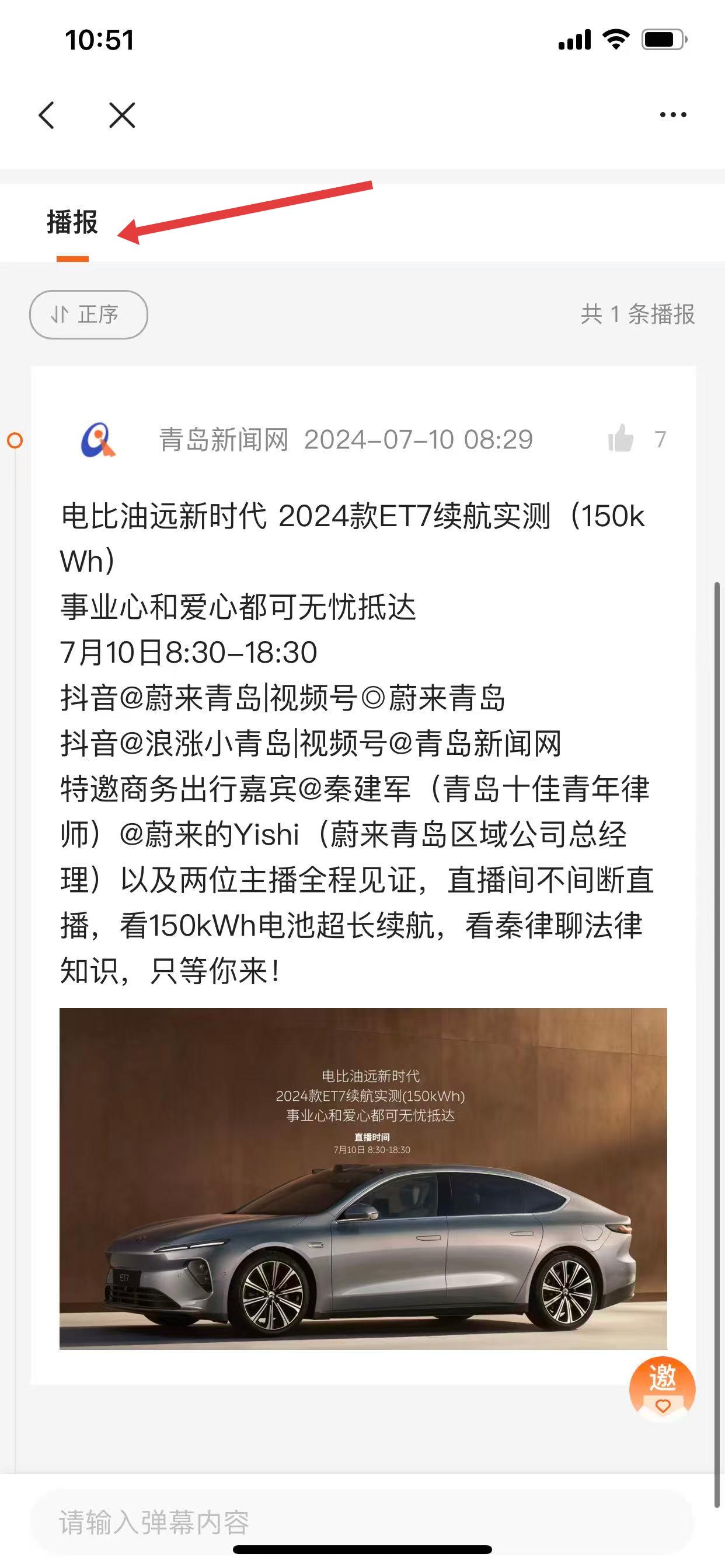 4、在直播回放页面,通过播报板块查看该直播的相关文字播报信息。