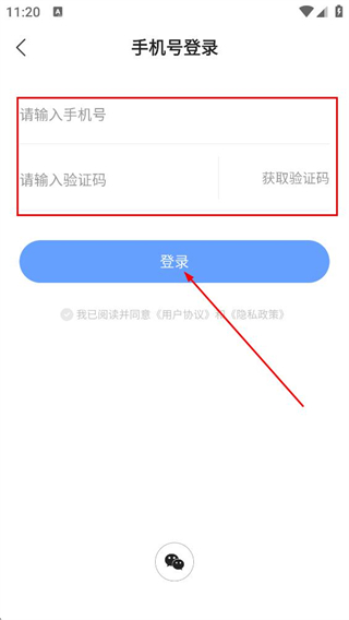 4、在手机号登录页,填写手机号与验证码,点击登录按钮完成登录。