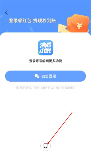 3、在登录界面,点击下方的手机图标,切换至手机号登录的页面。