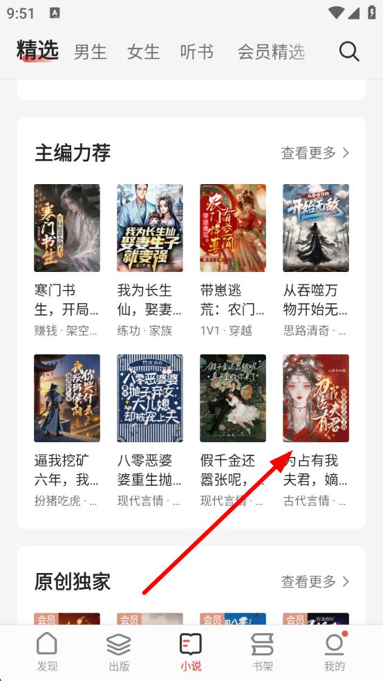 1、打开掌阅APP,在小说界面的主编力荐中选择要分享的书籍。