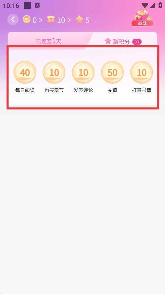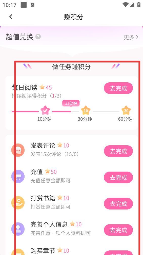2、在积分获取相关界面,可以看到完成特定阅读任务能获得积分