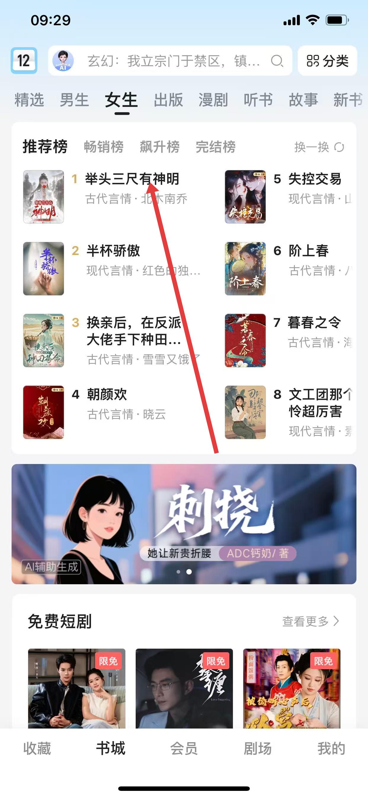 1、在咪咕阅读的书城页面,点击你想要阅读的书籍。