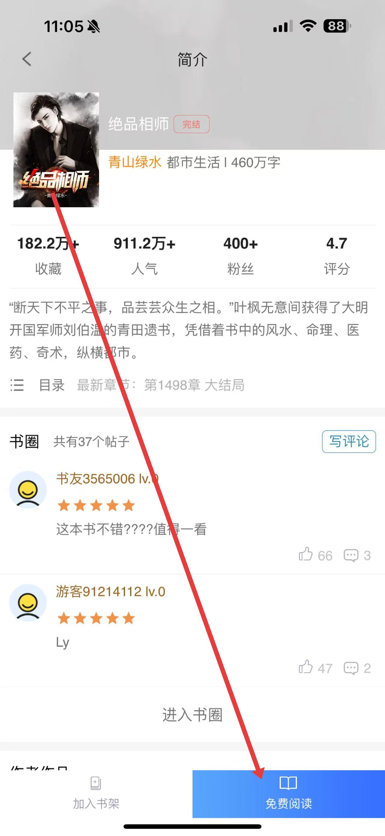 3、进入小说详情页面后,点击免费阅读按钮。