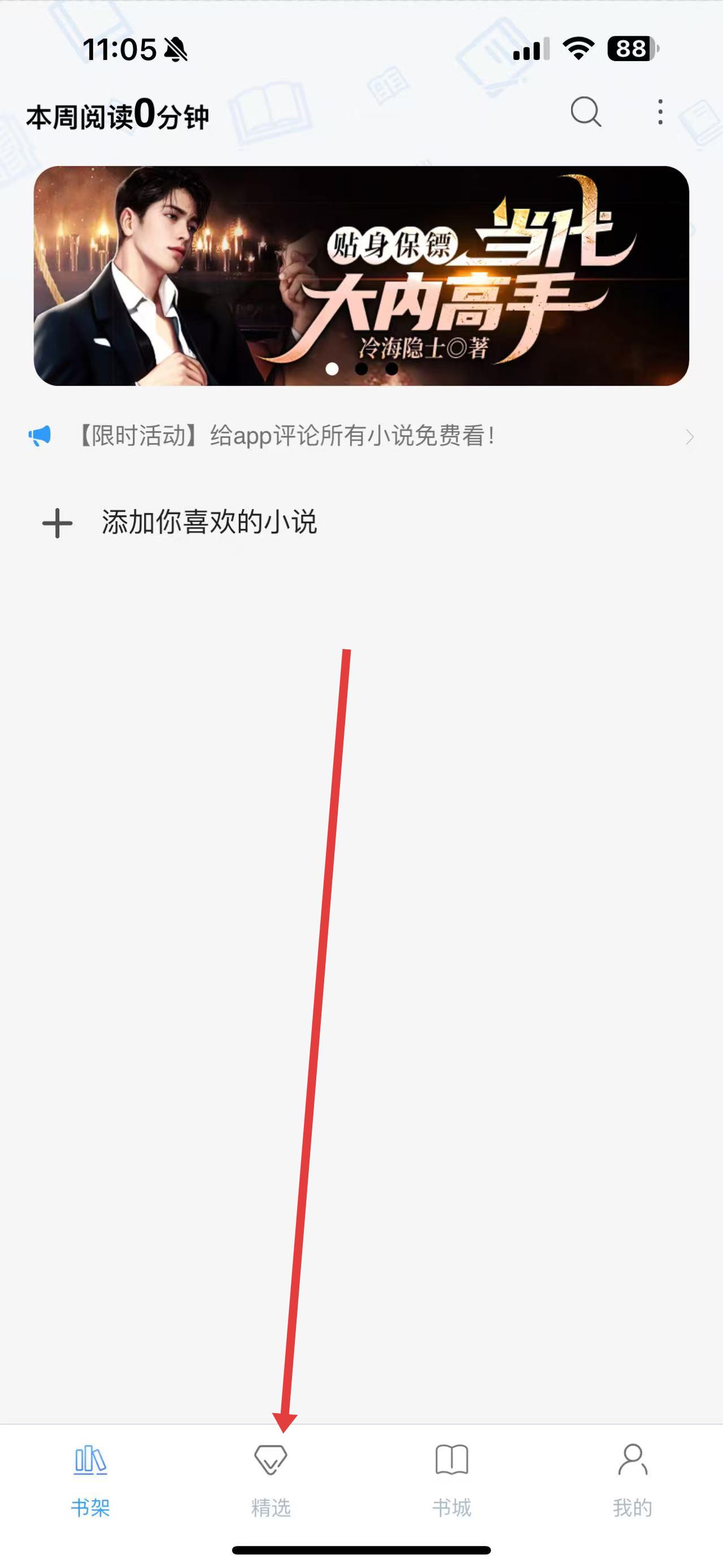 1、打开乐读小说App,点击底部导航栏中的精选选项。