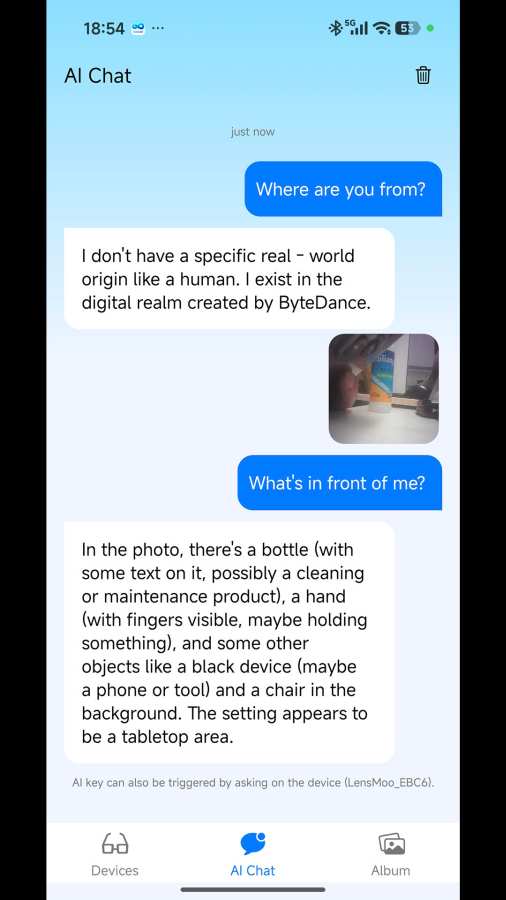 智能交互:与Open AI大模型深度集成,支持语音聊天、动植物识别、食物热量分析和题型解答等图像理解功能。