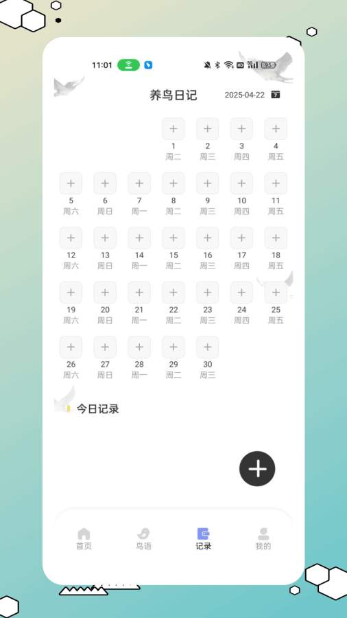 记录界面则是爱鸟生活的专属日记本,支持用户随时随地记录每日与爱鸟的互动日常,无论是精心投喂的温馨瞬间,还是鸟儿欢脱嬉戏的活泼场景,都能以文字、图片或视频的形式留存下来,定格珍贵回忆。“鸟类百科” 以丰富多元的功能,成为连接人类与鸟类、宠物之间的桥梁,陪伴用户探索自然、享受与宠物相伴的美好时光。