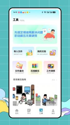 流程图超实用!首页可进行文件备份,助力灵感与想法的梳理留存。学习页面,有学习打卡、学习笔记功能,还有思维导图教程,能帮你掌握知识梳理技巧。工具页面,导入文件、文档管理、压缩解压、工作清单等工具一应俱全,方便高效处理文件,此外还有职场解压指南,助你缓解工作压力。无论是学习还是职场办公,都能为你提供有力支持~ 来自应用汇: 流程图