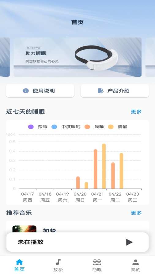 基于科学算法预测睡眠阶段(清醒、浅睡、深睡),智能推送匹配的音频,帮助您更快进入睡眠状态。