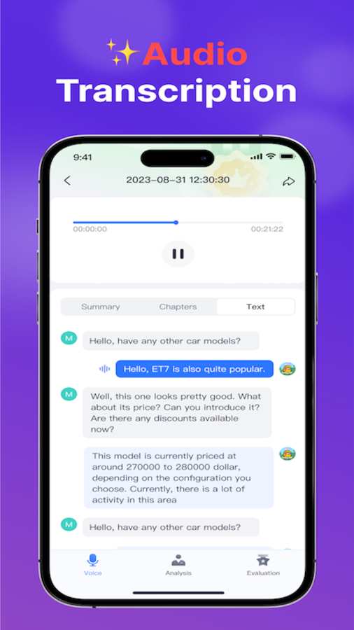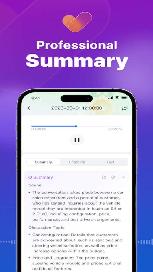 主要功能1. 音频文件快传:音频文件实时上传到 Whale Echo 中,并立即进行转写2. 实时转写:实时记录并为当前场景总结关键信息,防止信息丢失3. 多语言转写:支持多国家语言,适用性更广4. AI总结:一键萃取关键信息,轻而易举获取信息5. 录音:一键及时录音,并自动进行总结6. 分享:总结文本分享给你所有的应用程序 来自: Whale Echo