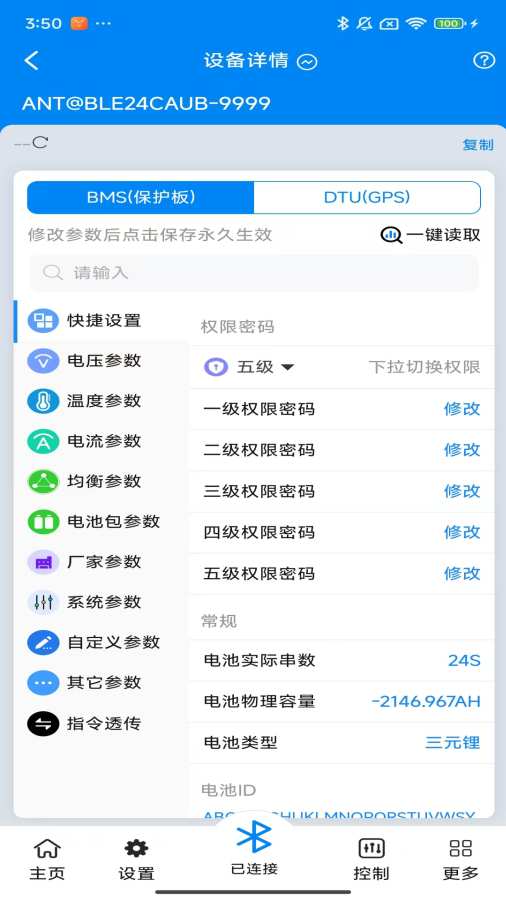 蚂蚁BMSV2 APP,轻松连接您的BMS保护板。通过蓝牙或网络连接,提供实时SOC、电压、电流等关键数据,同时支持定位和远程控制功能 来自: ANT BMS V2