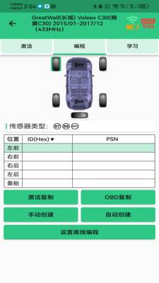 手机蓝牙连接胎压编程器对汽车胎压传感器进行程序编写。支持亚/欧/美及国产98%以上带胎压系统的车型。便捷、高效、无线传输,设备支持315MHz和433MHz胎压传感器。同时可连接OBD设备对新编程的传感器进行快速方便学习以及读取清除车辆故障码。 来自: MateTpmsA1