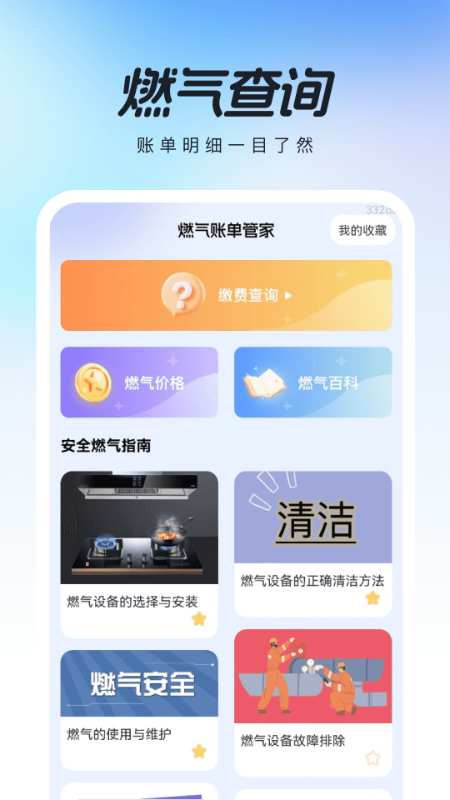 “燃气账单管家”App,是您家庭燃气使用的贴心好帮手。通过它,您可以便捷查询燃气用量,清楚掌握每一度气的消耗;查看燃气设备信息,了解设备运行状态。燃气价格一目了然,让您消费明明白白。燃气指南丰富实用,助您安全、高效用气,还能收藏重要指南,随时查看。收藏管理功能让您的收藏井井有条。燃气充值记录详细清晰,方便您核对账单。更有温度查看及24节气倒计时,增添生活趣味,还能了解空气质量,提升生活质量,全方位满足您的燃气与生活需求。 来自: 燃气账单管家
