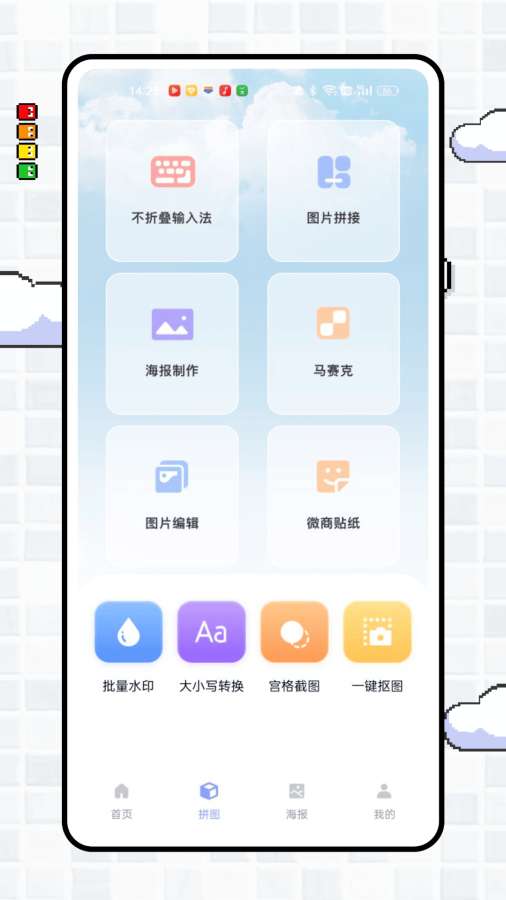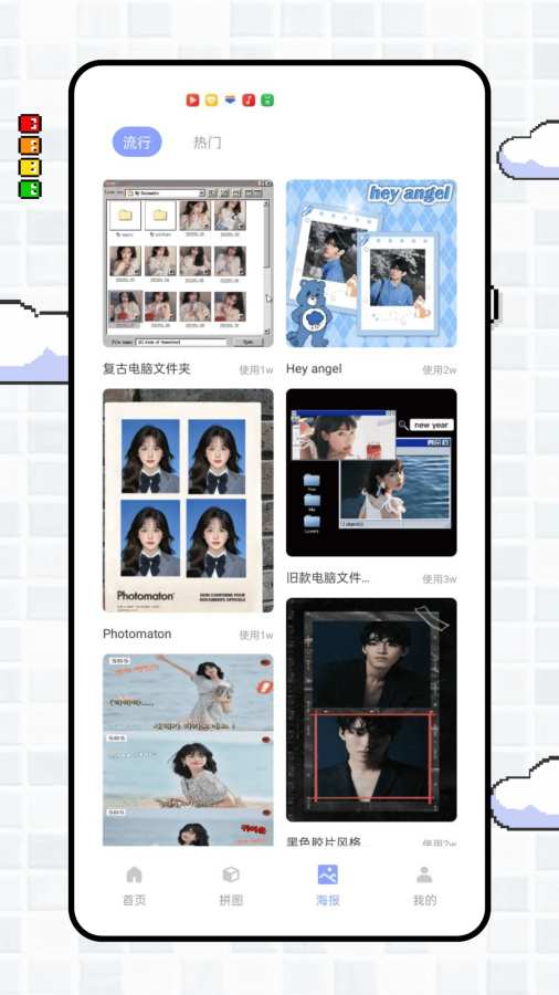 “简拼图”是一款功能丰富且操作便捷的图像编辑软件,专注于满足用户多样化的图片处理需求。 在图片编辑功能上,它提供了基础又实用的操作选项。“图片编辑”可进行裁剪、调色、添加滤镜等常规处理;“消除笔”能轻松去除图片中多余元素;“智能抠图”可精准抠取图像主体;“截图拼图”支持将多张图片拼接成富有创意的新图片;“海报”板块拥有丰富模板,助力用户快速制作出吸睛海报;“相框”则为图片增添各式精美边框。 此外,软件还具备特色功能,如“不折叠输入法”方便文字输入,“微商贴纸”满足商业宣传需求,“批量水印”可高效为多张图片添加水印。“大小写转换”“宫格截图”等功能也为用户提供了更多便利。 视频教程栏目分享各类p图、修图技巧,帮助用户提升图像处理能力。流行和海报列表中展示了丰富的模板和样式,供用户参考和使用。