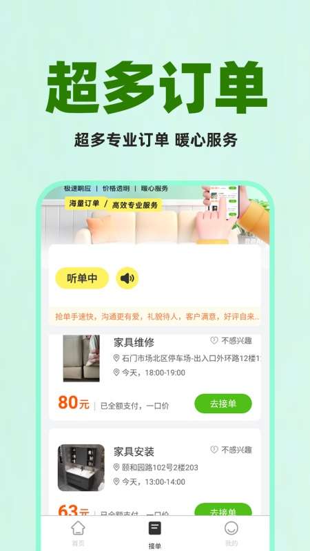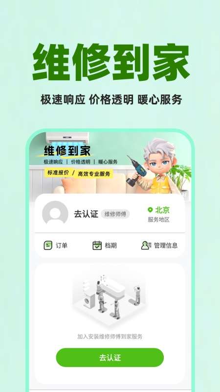 轻松入驻:师傅只需确认无不良记录、身体健康,完成实名认证并完善个人技能资质等信息,即可快速入驻平台,流程简单便捷。