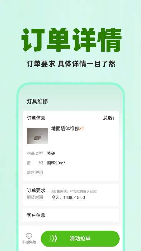 抢单增收:平台设有 “抢单大厅”,实时更新电路检修、水管爆裂抢修、水电设备安装等各类订单,订单要求清晰明确。师傅可根据自身技能、服务区域和时间安排,灵活抢单,多劳多得,拓宽收入渠道。