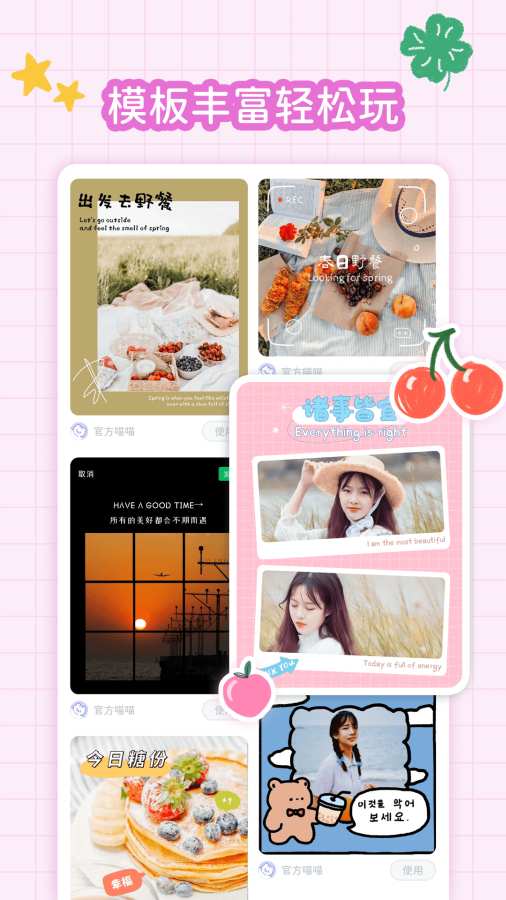 不断更新的精美模板,无论是杂志风、可爱风、还是咕卡拼贴,都可以一键套用,为您免去设计排版的烦恼。
