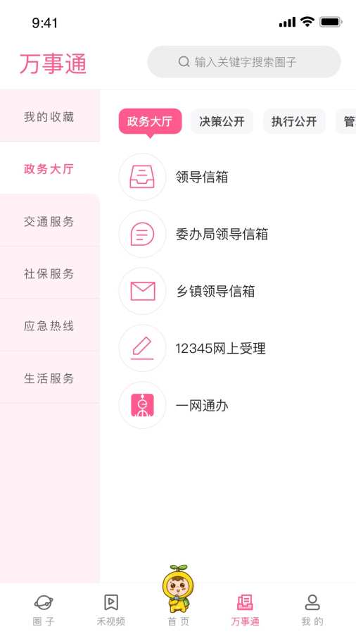 线上办理或预约政务项目,查看生活资讯,提供便民生活品质服务,社保、个税、信用、违章等各种查询,水电气费缴纳等日常事务快速搞定。(请确保以上功能都能实现)