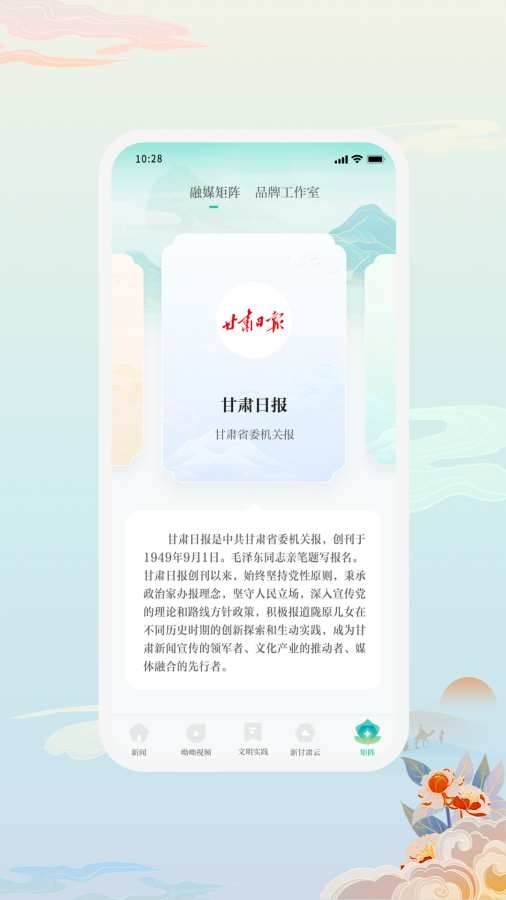 新甘肃客户端是甘肃新媒体集团倾力打造的甘肃第一新闻党端,是以“新闻+政务+服务”为核心的综合性移动新媒体,既权威、理性、丰富,又生动、活跃、周到,更快捷、更立体、更全面地讲述甘肃好故事、传递甘肃好声音、树立甘肃好形象。 新甘肃客户端是宣传省委省政府重要政策的主平台、发布甘肃信息的主窗口。新甘肃客户端全天候生产与播发原创新闻、政务信息和音视频节目,第一时间传播甘肃新闻与社会民生动态,14个市州频道和86个县区栏目全方位全时段提供甘肃全省的地方新闻和生活资讯,是用户了解甘肃发展大势最及时、最权威、最具公信力的移动传媒。视频直播和网络电台突出独家、尊重原创、传递思想,为用户提供贴心政务及生活服务。