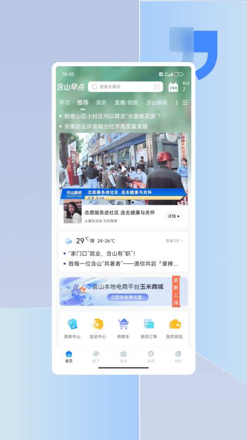 应用为含山县视频资讯,新闻资讯,生活服务类app,用户通过该应用可以获得最新最及时的县级新闻,了解含山县身边的事,身边的人,发现含山县美好的食物,收听县级广播,观看县级视频,获取便民服务信息,记录美好含山新鲜事。 来自应用汇: 含山早点