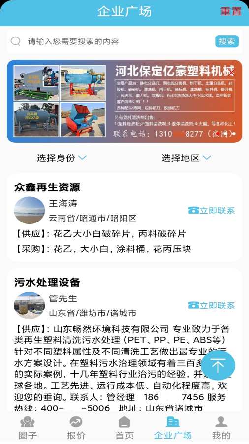 聚酯圈主要功能包含有圈子(瓶片、瓶砖供求信息)、聚酯行情报价(再生瓶片瓶砖、原生切片等厂家一手价格)、企业广场(客户联系方式)等多项功能;海量的供求信息、及时准确的厂家报价让你的生意更进一步; 聚酯、PET、矿泉水瓶、瓶片、瓶砖、化纤、切片 来自应用汇: 聚酯圈