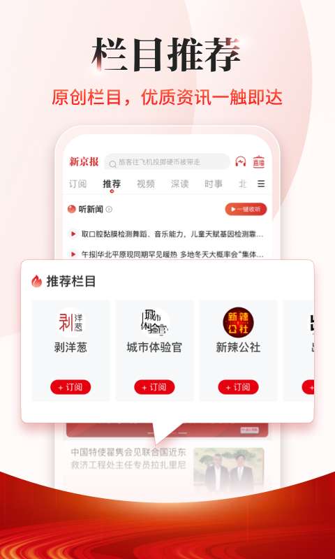 视频新闻:结合“我们视频”和新京报新闻的优势,集合视频、短视频、小视频、直播,传递用户富有画面感的新闻资讯。