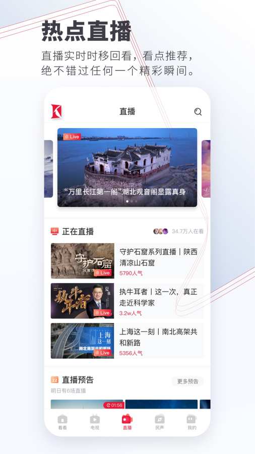 看看新闻多重角度 全时追踪世界热点;时移回看,看点推荐,绝不错过任何一个精彩瞬间;