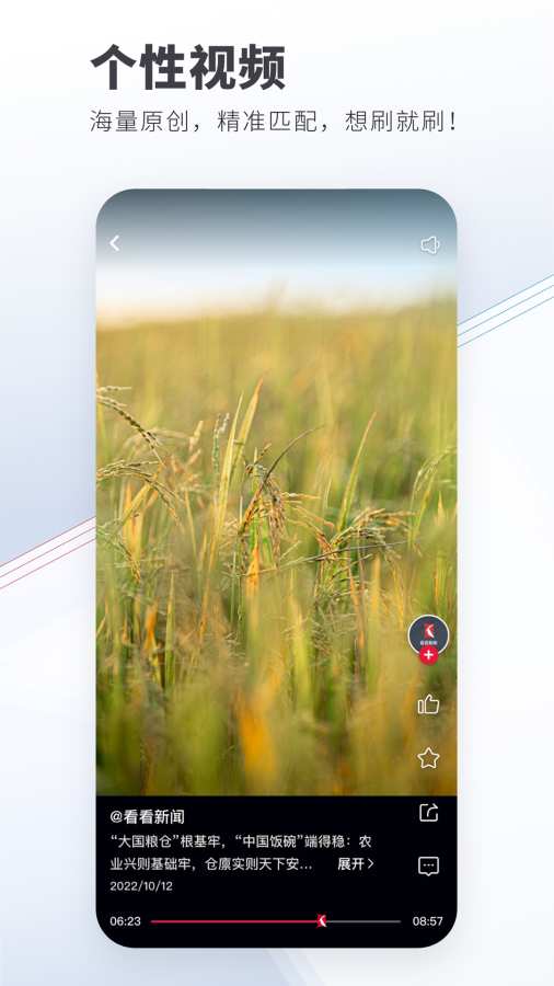 看看新闻海量原创视频,精准匹配用户喜好,想刷就刷;