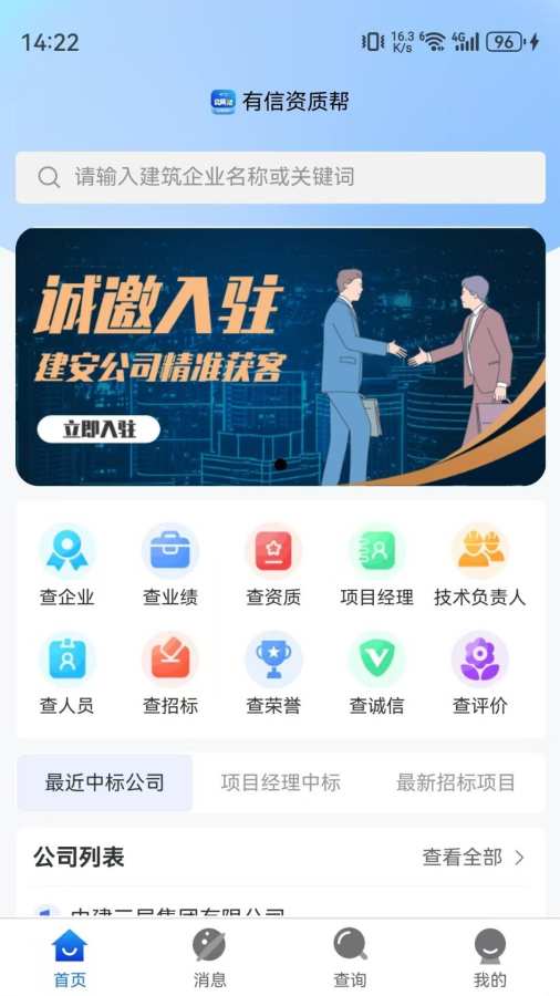 工程行业全能助手:一键查询资质、业绩、人员、在建项目,轻松找合作加盟