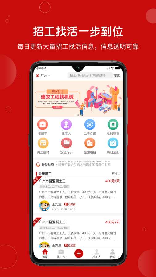 每天实时更新海量招工、找活信息!超百万工友在线找活,满足老板工人的招工、找活需求!