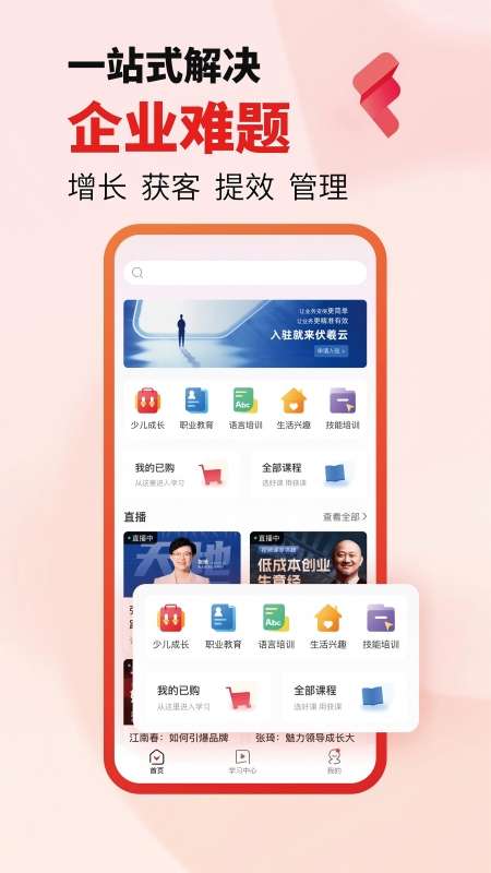 定位赋能全中国管理培训行业,利用互联网基因,通过“知识IP孵化+全媒体运营获客+知识电商交易”多业务模式,为知识内容创作者,知识内容付费用户及商学院式商家全方位赋能!