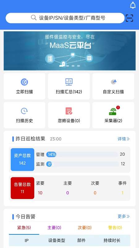 *独立采集设备硬件运行数据(CPU、内存、磁盘、端口、告警等),不入侵上层业务,保障业务安全