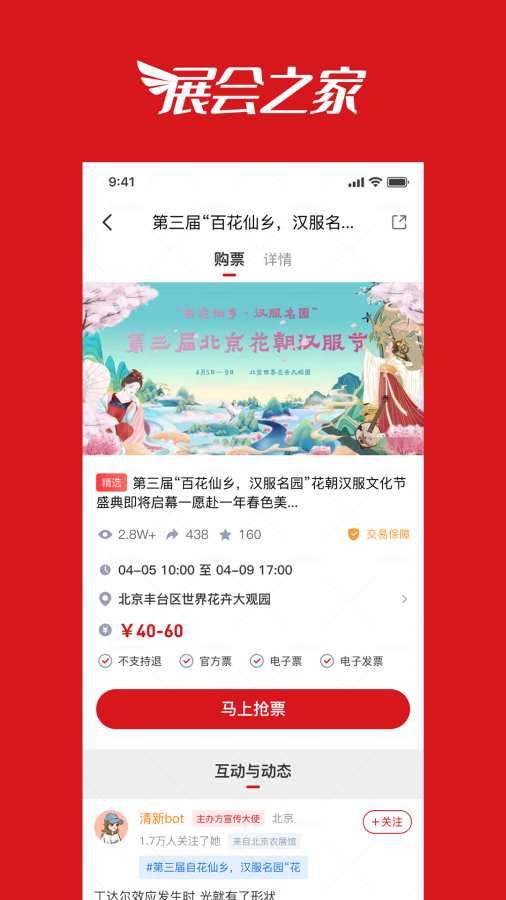 展会之家是北京中知网开发的展会,会展,展览综合服务平台,平台可以在线购票,在线参展,在线分享活动。展会之家属于B2C服务平台,聚集全国众多展会举办方,高频聚焦展会领域,给消费者方便参展,逛展,参展。特点:在线看展,逛展,购展,融合会展,演唱会,大型会议等于一体的展会展览综合服务平台 来自应用汇: 展会之家