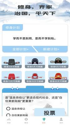 2、个性化成长路径,从习惯养成到深度自律,助用户循序渐进提升自我;此外我们也融入了《论语》等传统文化精髓,并结合现代价值观讨论,引导用户思辨与实践。