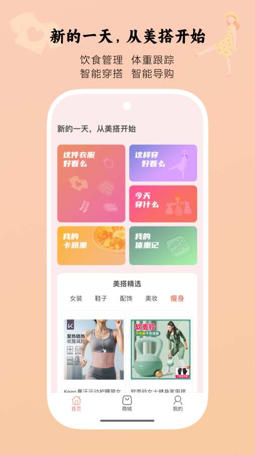美搭是一款融合了穿搭美学与健康管理的智能助手,提供穿搭建议、记热量、记体重等功能。