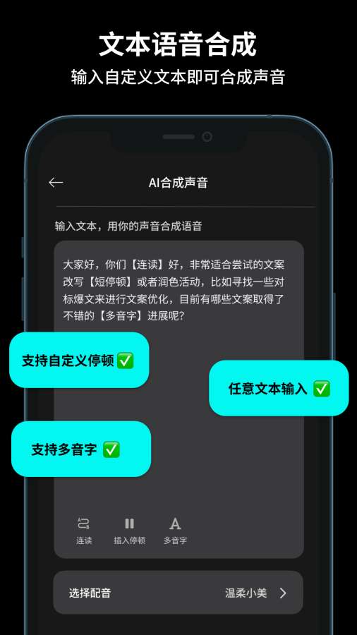 1.AI声音克隆:仅需10秒录制,即可精准复刻你的真实音色,语气自然、贴近真人,让AI为你“开口说话”。