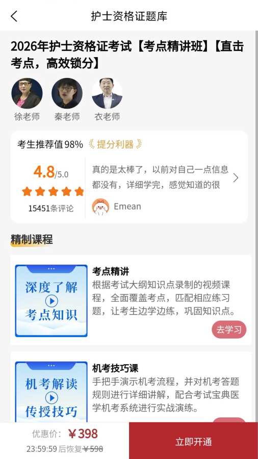 护士资格证题库是一款针对心理治疗师工作者考试研发的一套省时,高效,高通过率的学习软件。我们致力于打造教育考试领域的在线考试品牌,一直着重网站内容质量与口碑,积极加强师资队伍建设,完善学员服务的渠道,致力于做学员满意的品牌网站。