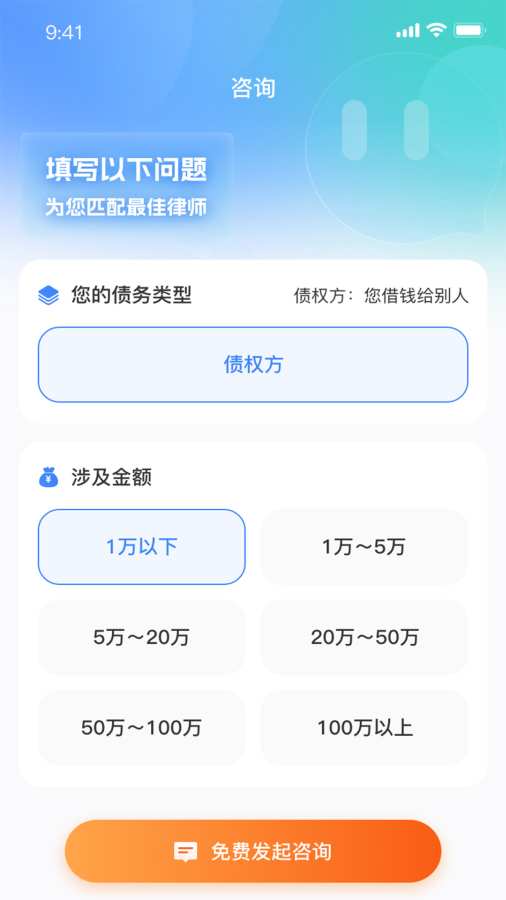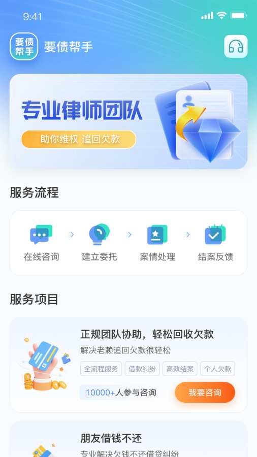 1.债务追讨咨询:用户可以在线与专业律师进行一对一咨询,了解债务追讨的法律途径和策略。