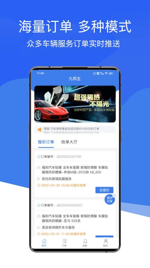 九邦主掌握国内98%主流车型精准养车方案,拥有上亿级底层数据,可以针对不同车型车况,提供保养、维修、洗车、美容等一站式智慧用车服务。通过全面应用智慧系统,为所有车主提供更精准更透明的智慧用车服务方案,车主可在线下单,预约到店服务,施工全程记录。目前九邦主施工门店全国已经超过1500家,已有千万辆车享受智慧用车服务。告别传统养车、美容,九邦主智慧用车! 来自: 九邦主