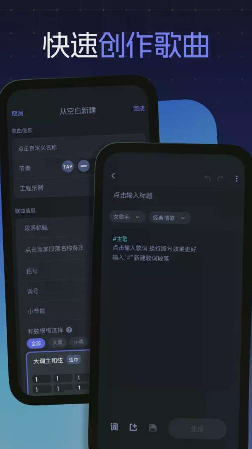 和弦派严格遵循音乐理论基础,按照专业音乐制作逻辑有序完成作品构建。在每一次与用户的交互过程中,和弦派都致力于启发并捕捉创作者的独特灵感火花,共同打造出极具差异化和个性化的音乐作品。