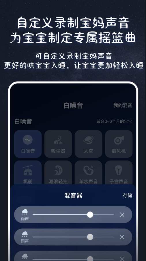 混音器功能:还有混音器功能可以根据宝宝的喜好和需求,自定义混合不同的声音,创造出独特的助眠环境。