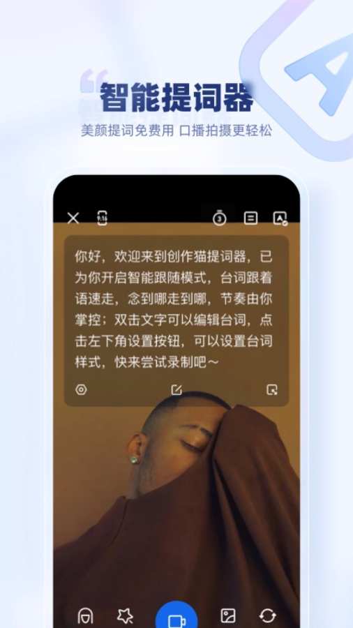 -智能跟随,任意调节台词滚动速度,台词跟着语速走,想怎么拍怎么拍。