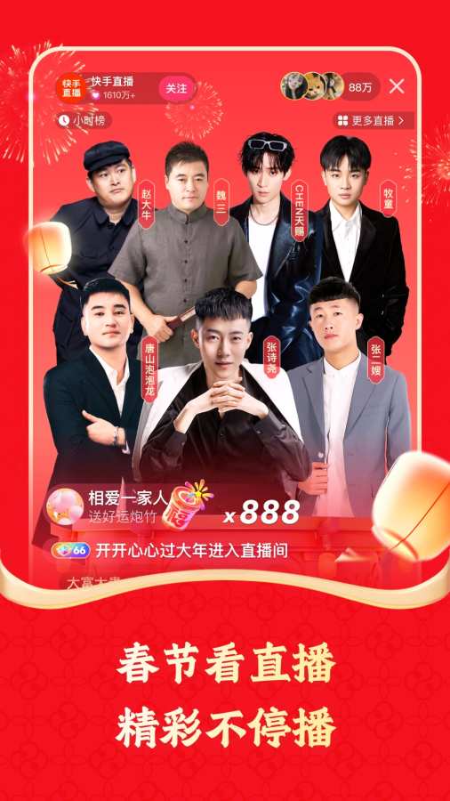 「春节看视频 快乐抢先到」春节期间众多优质、趣味短视频内容,带给用户快乐及年味 「春节看直播 精彩不停播」春节期间,将会带来丰富的直播内容,让用户看不尽看不完 「春节来聊天 合养火崽崽」春节期间社交主推私信功能,IP形象为火崽崽,用户可以合养带来趣味性及社交性 「春节用搜索 年味全掌握」针对春节好玩的有趣的新鲜的内容,使用搜索全部一网打尽 「春节看热榜 热点抢先知」春节热点热榜来这里全知晓,超火超热的信息全收获