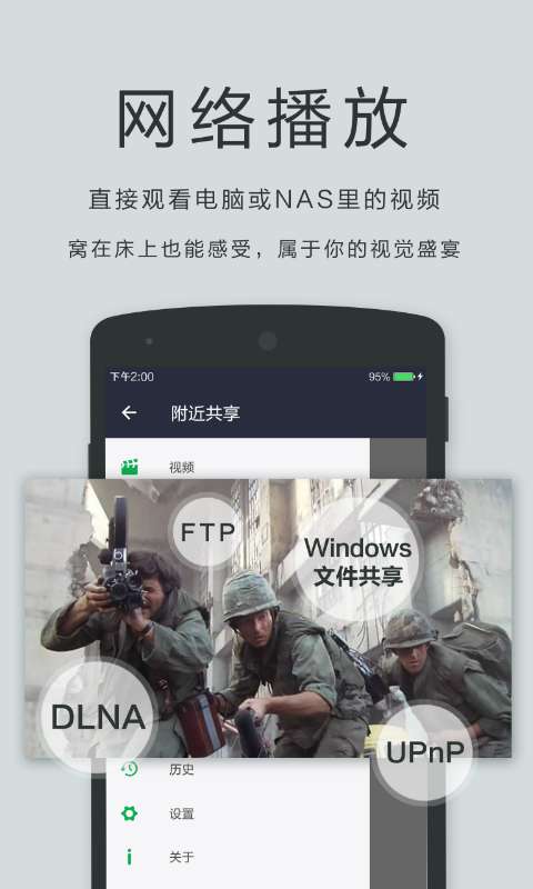 OPlayer是一款支持多种格式的本地播放器,可以直接把影片从电脑传进设备里。它还支持FTP/SAMBA/UPnP/DLNA等网络播放。作为一款发布了50多个版本,OPlayer支持的格式更全面,软件更稳定,功能更丰富,使用更简单。