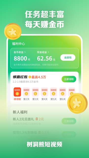 树洞熊短视频,温暖上线!用心呈现每一个精彩瞬间,为你推荐海量正版优质内容,在流动的画面与故事中,找到属于你的情感陪伴。 界面清爽简洁,支持多类画质随心切换,多种滤镜与编辑工具自由调节,打造专属视觉风格 个性化设置丰富,包括桌面快捷入口、智能推荐模式,贴合你的浏览习惯与偏好 内容涵盖影视剪辑、情感短剧、生活记录、创意萌宠……全面服务多元用户需求 精选专题、弹幕互动、背景听播、内容笔记、金币兑换……为你开辟多种互动观看方式,乐享沉浸式观映体验与创作福利!