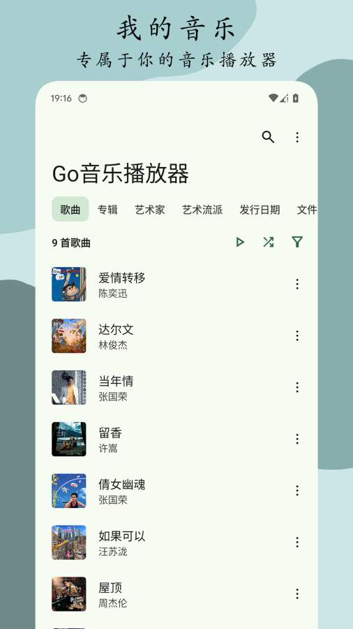 Go音乐播放器是一款专为音乐爱好者打造的本地音乐播放器,让您随时随地尽情享受您喜爱的音乐。您可以方便地管理和播放您设备中的音乐库,体验音乐畅享。