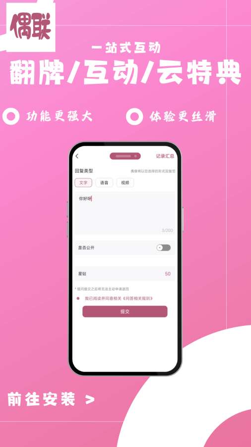 偶联APP是由天津偶联科技有限公司开发的一个专注于偶像文化的专属交互平台,集优质live偶像团体于一体的线上偶像乌托邦。为粉丝与偶像建立线上连接纽带,实现高效双向奔赴的互动体验;同时搭建偶像间的联结桥梁,凝聚偶像力量,共同塑造新兴文化共同体。成为线下live演出偶像文化的核心推动者,打造最具影响力的偶像互动平台。 来自: 偶联