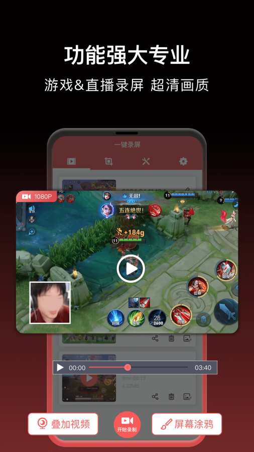 【超清流畅画质】支持1080p超清录屏+60fps高帧率,升级视频处理技术,录制视频稳定流畅